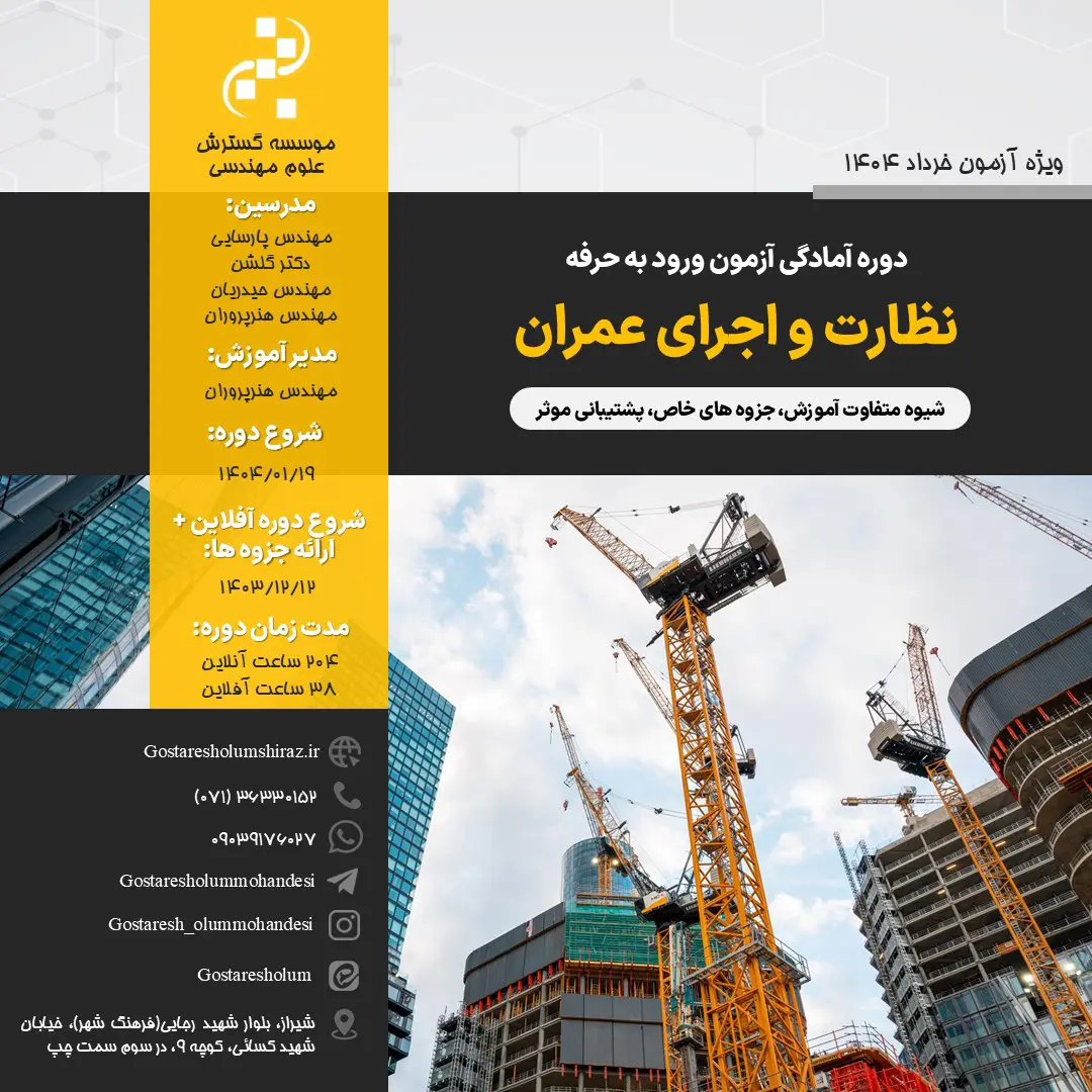 دوره آمادگی آزمون ورود به حرفه نظارت و اجرای عمران (ویژه آزمون خرداد 1404)
