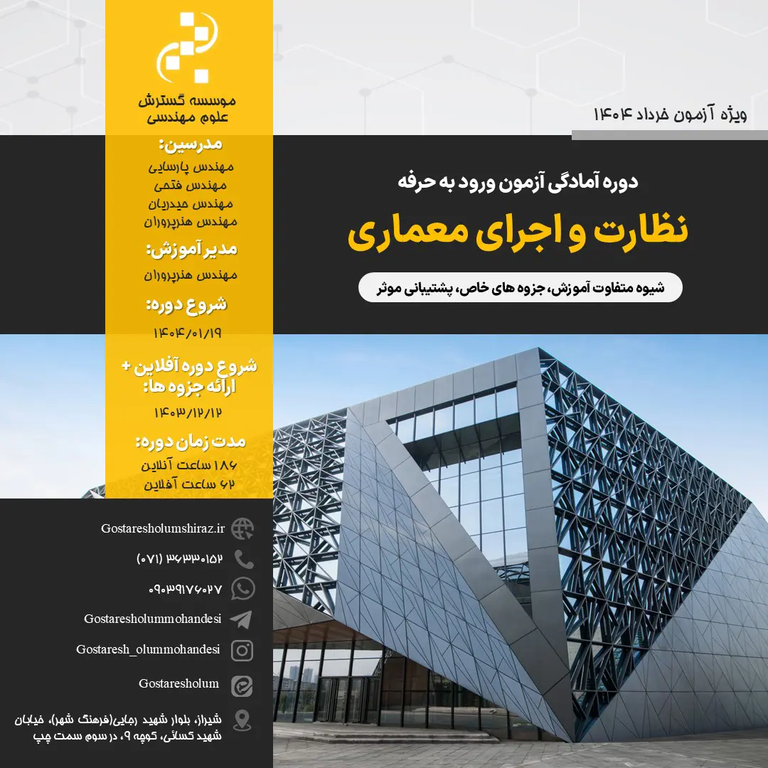 دوره آمادگی آزمون ورود به حرفه نظارت و اجرای معماری (ویژه آزمون خرداد 1404)